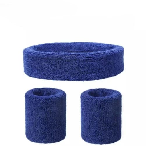 Kit Com 1 Faixa De Cabeça + 2 Munhequeiras Atoalhadas Algodão - AZUL ESCURO