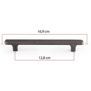 16,9 cm de comprimento 12,8 cm entre furos