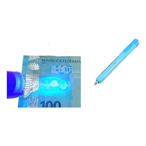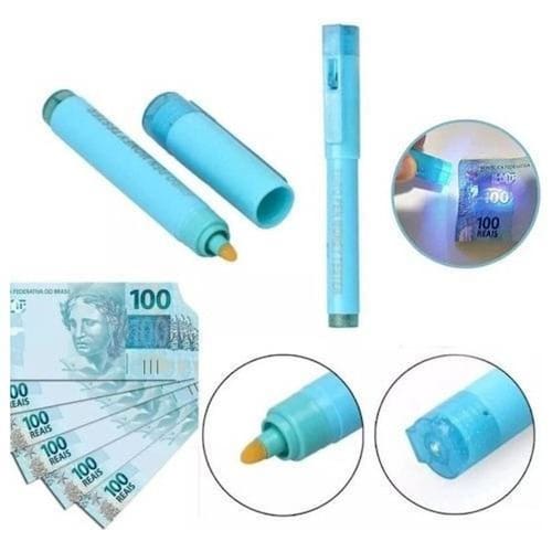 Com a mini lanterna de luz ultra violeta você é capaz de detectar dinheiro falso, pois ela ressalta as marcas dágua em notas de dinheiro.