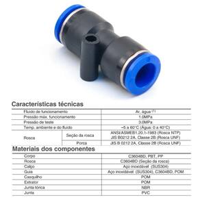 Conexao instantanea , modelo:uniao reta, tubo:06 mm, pressao de trabalho:8 bar, fluido:ar, material:plastico,garra em zinco, temperatura de trabalho:0-60c Marca: Não Informado