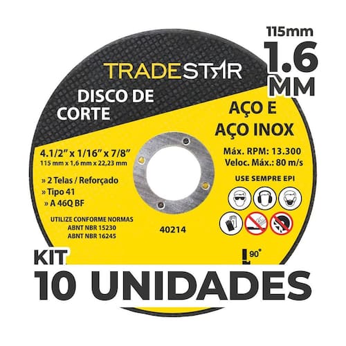 Kit com 10 Unidades Disco de Corte Metal 4.1/2 115x1,6 mm O Disco de Corte Metal 4.1/2 115x1,6 mm , a solução definitiva para profissionais que buscam potência e precisão no corte de metais. Com um diâmetro de 115mm e espessura de 1,6mm, este disco oferece cortes limpos e eficientes em uma variedade de materiais metálicos. Principais Características e Aplicações: Corte Eficiente: Execute cortes rápidos e precisos em metais diversos, desde ferro até aço inoxidável. Manufatura e Construção: Indispensável para projetos industriais, construção civil e manutenção. Como Obter Resultados Notáveis: Garanta que o material esteja fixo e seguro antes de iniciar o corte. Utilize o disco em uma esmerilhadeira angular ajustada à velocidade correta. Mantenha a esmerilhadeira em um ângulo adequado e faça movimentos suaves para um corte uniforme. Benefício Central do Disco de Corte Metal: O Disco de Corte Metal 4.1/2 115x1,6 mm é a ferramenta ideal para profissionais que buscam cortes limpos e eficientes, elevando a qualidade de seus trabalhos. Disco De Corte Para Aço E Aço Inox Indicado Para Corte De Aço E Aço Inox. 2 Telas/Reforçado. Tamanho: 4.1/2 115 Mm Espessura: 1,6 Mm Furo: 22,23 Mm R.P.M.: 13.300 Quantidade por embalagem - 10 unidades 90 dias após a compra. Imagens meramente ilustrativas As tonalidades da cor do produto podem sofrer alterações de acordo com a tela que estiver usando para visualização. Vantagens de Comprar com a JJC Ferramentas: Experiência e Confiança: Somos especialistas em ferramentas e acessórios, garantindo produtos de qualidade e desempenho superior. Variedade e Qualidade: Oferecemos uma seleção abrangente de ferramentas, sempre priorizando a durabilidade e eficiência. Atendimento Personalizado: Nossa equipe está pronta para ajudá-lo, oferecendo suporte técnico e orientações precisas. Entrega Rápida: Garantimos uma logística eficiente, assegurando que seu pedido chegue no menor tempo possível. Satisfação Garantida: Se por algum motivo não ficar satisfeito, oferecemos política de devolução sem complicações. Marca: Não Informado Ean: 7898751383595