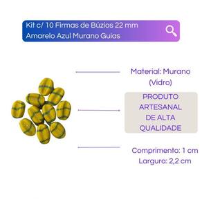 Kit com 10 Firmas de Buzios 22 mm Amarelo Azul Murano Guias Kit com 10 Firmas de Búzios 22 mm Amarelo Gema Murano Guias