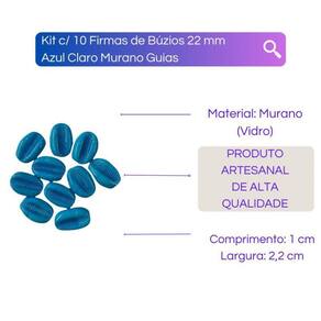 Kit com 10 Firmas de Búzios 22 mm Azul Claro Murano Guias Firmas de Búzios, trará, Paz, Intuição e Proteção. Para fazer a sua guia de proteção, você vai usar um cordão de náilon ou barbante no qual possa colocar contas da cor pedida pelo seu Orixá. Dê um nó na ponta, deixando um pedaço a mais sem contas e vá colocando-as até ficar de um tamanho até mais ou menos na altura do umbigo. Antes de começar, em um lugar calmo de sua casa, reze um Pai-Nosso para seu Orixá. Kit c/10 Firmas para guias na Umbanda e Brajás no Candomblé. Composição: 100% vidro Formato: Formato de búzios com furo passante no meio Dimensões da peça aproximada: 2,2 cm X 1 cm Produto 100% Artesanal, reprodução das cores podem variar de acordo com as configurações do seu monitor, lote de fabricação, o produto pode apresentar leve variação de cores e padrões. Imagens meramente ilustrativas Tire todas as suas Dúvidas antes de concluir a compra. Iremos responder o mais breve possível. Embalagem de Envio: Caixa de papelão ondulado, plástico bolha, conforme necessidade do produto. Consulte nossos preços e condições para vendas. Respostas das dúvidas mais frequentes na ordem: R1: Já realizamos milhares de entregas em todo o Brasil, somos especialistas no que fazemos. R2: Assim que seu pedido for despachado, esta plataforma envia para você o código de rastreamento. R3: Enviamos o produto 100% inspecionado e conferido em nosso checkout e são embalados em embalagem de papelão e plástico bolha. R5: Iremos despachar o seu produto o mais rápido possível, assim que for confirmado pela plataforma, enviamos em até 24h. R6: Nós queremos a sua satisfação, qualquer problema iremos te auxiliar em nossos canais de comunicações. Marca: Lua Mística - 100% Original - Loja Oficial Ean: 7890003931974
