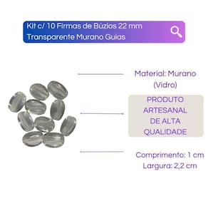 Kit com 10 Firmas de Búzios 22 mm Transparente Murano Guias Kit com 10 Firmas de Búzios 22 mm Transparente Murano Guias
