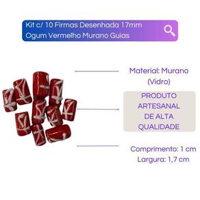 Kit com 10 Firmas Guia Desenhada Murano 17mm Orixá Cor: Ogum Vermelho Kit com 10 Firmas Desenhada 17mm Murano