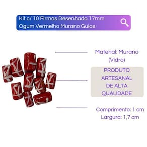 Kit com 10 Firmas Guia Desenhada Murano 17mm Orixá Cor: Ogum Vermelho Kit com 10 Firmas Desenhada 17mm Murano