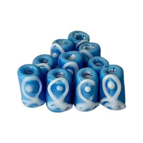 O Kit com 10 Firmas Desenhada 17 mm Murano da Bialluz é ideal para fazer sua guia de proteção e trará muita paz, intuição e proteção do seu Orixá. Produzidas em Vidro Murano possuem alta qualidade e longa durabilidade. Tem formato cilíndrico com furo passante no meio com espessura suficiente para variados tipos de cordões.