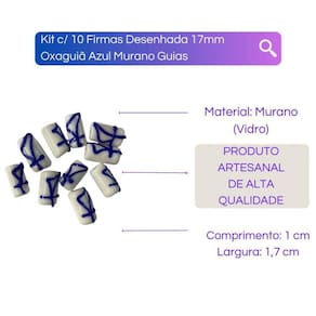 Kit com 10 Firmas Guia Desenhada Murano 17mm Orixá Cor: Oxaguiã Azul Kit com 10 Firmas Desenhada 17mm Murano