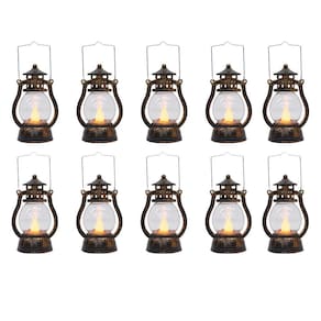 Luminária Decorativa PEQUENA, em forma da lamparina com 12 cm de altura. Interior com enfeite em forma de 1 vela. Botão liga e desliga. Ao ligar, é como se a vela estivesse acesa.