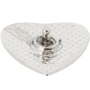 Margarida Coração fabricada em metal com pintura na cor Prata e detalhes entalhados, com tamanho de 29mm fixação por rebite.
