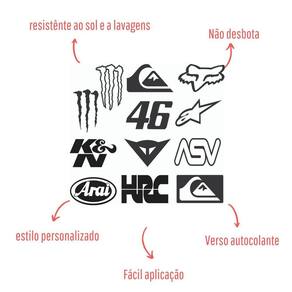 Kit com 12 adesivos moto gp marcas moto parts para motos Cor: branco Kit com 12 adesivos moto gp marcas moto parts para motos