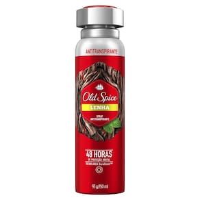 Spray Antitranspirante Old Spice Lenha com Fragrância de Hortelã. Proteção bruta durante o dia todo com apenas 1 aplicação.