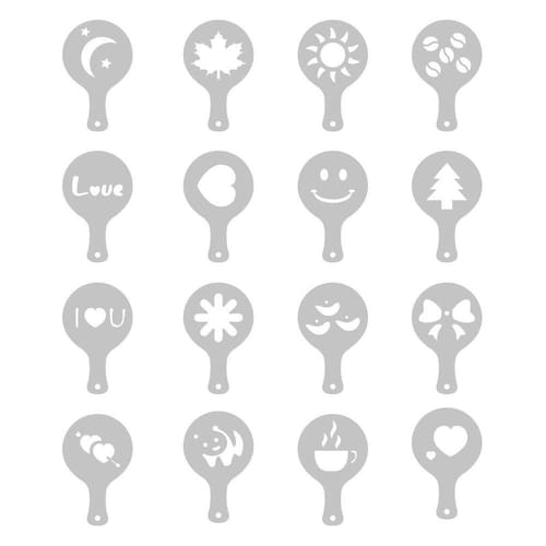 Kit com 16 stancils de plástico transparente e reutilizável.