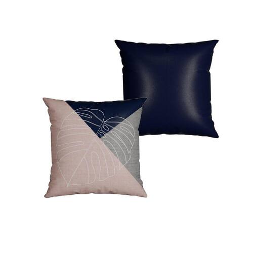 Kit com 2 Almofadas Decorativas Planta Bordada azul 43cm x 43cm 436 Belchior - Azul Petróleo