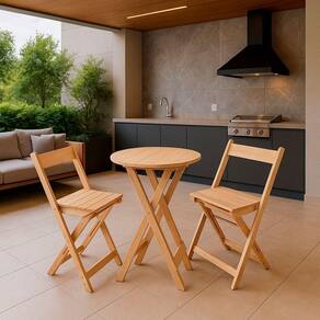 O Kit Bistrô Dobrável com 2 Banquetas em Madeira Pinus é a solução perfeita para quem quer unir charme e funcionalidade em ambientes compactos ou descontraídos. Com um design rústico e natural, é ideal para varandas, áreas gourmet, cozinhas , bares ou espaços comerciais.