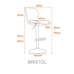 A banqueta Bristol é moderna e minimalista. O assento em couro ecológico traz conforto e sofisticação, e o detalhe da costura dá um charme a mais na peça. A base é em aço com pintura, e sua altura pode ser ajustada, adaptando-se à diferentes bancadas ou mesas. Característica: Encosto / Assento em Couro Ecológico PU e Base em Aço Pintado Pés Reguláveis / Giratório Como Utilizar: Cuidados Com o Produto / Pano Úmido Matéria Prima: Couro sintético / Aço carbono