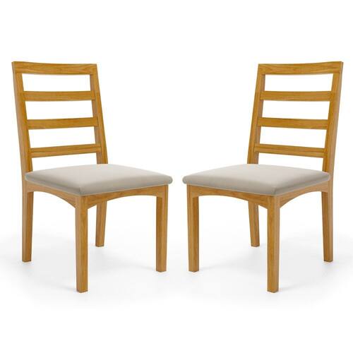 Kit Com 2 Cadeira Cecília Encosto E Pés De Madeira Maciça Assento Estofada Para Mesa De Jantar - Bege