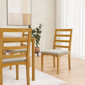 Apresentamos a você a cadeira Cecília, estruturada em madeira maciça com assento estofado com espuma D-23.