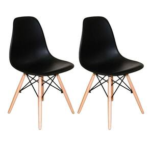 Kit Com 2 Cadeiras Charles Eames Dsw Preta - Base Madeira Cadeira Eiffel Eames Base Madeira A CADEIRA CHARLES EAMES EIFFEL foi criada nos anos 50, é vencedora do Museu de Nova York da concorrência Design de Mobiliário Low-Cost Arte Moderna Internacional. Sua base é em MADEIRA no formato de uma torre faz com que o ambiente não fique sobrecarregado. Adequa-se perfeitamente para compor conjunto de mesa de jantar ou qualquer outro ambiente em sua casa ou escritório. Ideal para receber amigos e familiares com um toque de elegância e charme. As pernas da cadeira são em madeira e fios de aço preto no qual garantem estabilidade à cadeira.