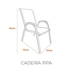 A cadeira Pipa é super estilosa para usos em áreas de piscina e ambientes externos! Seu assento em tela garante beleza, além de conforto para quem utiliza. Além de ter a resistência de seu acabamento em alumínio, é ideal para uso em área externa. Seu detalhe do braço, garante todo o charme da madeira, porém, com a resistência da resina. Acabamento da Estrutura: Tela Mesh Ambiente Principal: Jardim e Varanda Cor: Cinza Cor do Produto: Cinza Escala de Brilho: Fosco Estrutura do Assento: Fixo Estrutura do Encosto: Fixa Itens Inclusos: Cadeira Completa Manual de Montagem e Instalação: https://product-hub-prd.madeiramadeira.com.br/954975/documents/b4301d76-c3fa-41fc-9057-fb8bcfa8c7a680241727447507954975115280.pdf Marca: Fratini Móveis Necessita Montagem: Não Origem do Produto: Importado Peso: 3,42 kg Possui Rodízio: Não Recomendações de Uso, Manutenção e Limpeza: Pano Umido Resistente à Chuva: Sim Suporta Até (kg): 120 kg Tipo de Assento: Fixo