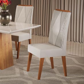 As Cadeiras Viero VEGAS s são produzidas segundo rígido padrão de qualidade, com materiais resistentes como MADEIRA MACIÇA , que conferem resistência e durabilidade ao produto, tornando-o capaz de suportar pesos de até 90 kg. As Cadeiras Viero VEGAS são perfeitas para complementar a decoração da sala de jantar, da sala de estar. Acabamento: Pintura UV Acabamento da Estrutura: Pintura UV Altura do assento até o chão: 37.5000 Ambiente Principal: Sala de Jantar codigo_ean: 7909903599860 Complexidade da Montagem: Baixa: pode ser montado por uma pessoa sozinha Cor: Marfim Cor do Produto: Marfim Dobrável: Não Enchimento do Assento: Espuma D-20 Enchimento do Encosto: Espuma D-20 Escala de Brilho: Semi-Brilho Estrutura do Assento: Madeira Estrutura do Encosto: Madeira/MDF Giratória: Não Informações Complementares: Cadeira Itens Inclusos: 2 cadeiras, manual de montagem e kit ferragem Manual de Montagem e Instalação: https://product-hub-prd.madeiramadeira.com.br/893090/documents/60dc1e25-de5d-4e78-946c-86ad5322cb4eesqdemontagemcadeiravegas1.pdf Material dos Pés: Madeira Material Principal: Madeira Maciça Necessita Montagem: Sim Origem do Produto: Nacional Peso: 6,75 kg Possui Apoio para Braços: Não Possui Apoio Para os Pés: Não Possui Rodízio: Não Quantidade de Itens: 2 Recomendações de Uso, Manutenção e Limpeza: Limpar com pano levemente umedecido com água Revestimento do Assento: Veludo Revestimento do Encosto: Veludo Sistema de Montagem: Parafuso, Cavilha Tipo de Assento: Fixo Tipo de Encosto: Fixo Tipo de Madeira Maciça: Eucalipto