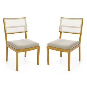 Kit Com 2 Cadeiras Milena Madeira Maciça Assentos Estofados Encostos De Tela Sintética Courino Preto 503 - Conjunto Kit Com 2 Cadeiras Em Madeira Maciça Encostos De Tela Sintética