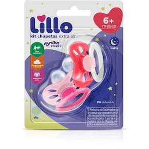 Kit Com 2 Chupetas de Silicone Rosa Brilha no Escuro Lillo