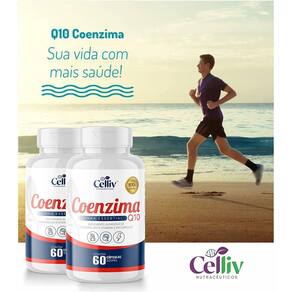 Kit com 2 - coenzima q10 100mg por porção 60 cápsulas celliv Kit com 02 unidades. Suplemento alimentar de coenzima q10 e vitamina e em capsulas. Poderosa aliada na produção de energia e na reparação celular, também possui ação antioxidante, melhora no desempenho dos treinos, desacelera o processo de envelhecimento, regenera do tecido cardiovascular, melhora o metabolismo celular e sistema imunológico. Ingredientes: Coenzima q10 e acetato de alpha-toco- ferol. Silicato de magnésio e celulose microcristalina. Composição da cápsula: gelatina, umectante glicerina e corante dióxido de titanio. Não contém glúten. Recomendações de uso - adultos 19 anos: ingerir 2 duas cápsulas ao dia. Frasco 60 capsulas 500mg produto isento de registro conforme rdc anvisa 240/2018 e in 28/2018 Marca: Celliv