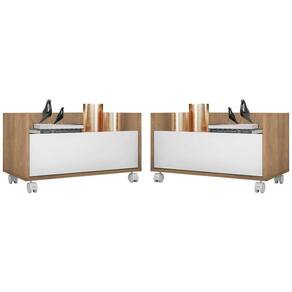 Kit com 2 Mesas de Cabeceira 80cm com Rodízios Multimóveis V4007 - Marrom
