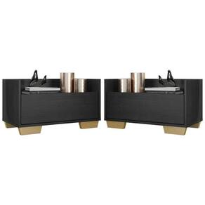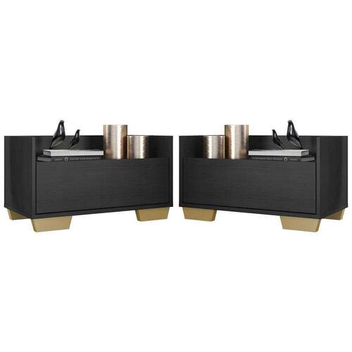 Kit Com 2 Mesas De Cabeceira 80cm Multimóveis V4003 Preta/natural Preto/natural O Kit com 2 Mesas de Cabeceira 80 cm com Pés Quadrados Multimóveis é uma solução prática para deixar o seu quarto mais bonito e complementar seu ambiente. Produzido em MDP com acabamento acetinado (cerca de 20% de brilho), que garante maior durabilidade e resistência, possui 1 gaveta com amplo espaço interno e corrediças metálicas que proporcionam mais leveza no manuseio. Os pés quadrados, em polipropileno, facilitam na hora da limpeza. Seu design clean permite que seja utilizado em diferentes ambientes, adaptando-se conforme sua necessidade. Conteúdo da Embalagem: 2 (duas) mesas de cabeceira 2 (dois) kits com 4 pés quadrados