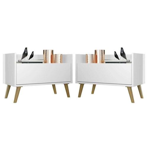 O Kit com 2 Mesas de Cabeceira 80 cm com Pés Retrô Multimóveis é uma solução prática para você deixar seu quarto mais bonito e complementar seu ambiente. Produzido em MDP com acabamento acetinado (cerca de 20% de brilho), que garante maior durabilidade e facilidade na limpeza, possui 1 gaveta com amplo espaço interno e corrediças metálicas que proporcionam mais leveza no manuseio. Os pés retrô, em polipropileno, dão um charme especial ao móvel deixando-o com um visual leve e permitindo você compor um ambiente com ar vintage e moderno ao mesmo tempo. Seu design clean permite que seja utilizado em diferentes ambientes, adaptando-se conforme sua necessidade.