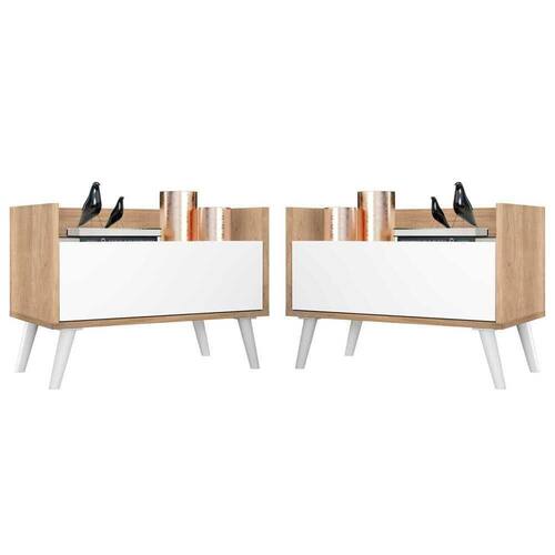 O Kit com 2 Mesas de Cabeceira 80 cm com Pés Retrô Multimóveis é uma solução prática para você deixar seu quarto mais bonito e complementar seu ambiente. Produzido em MDP com acabamento acetinado (cerca de 20% de brilho), que garante maior durabilidade e facilidade na limpeza, possui 1 gaveta com amplo espaço interno e corrediças metálicas que proporcionam mais leveza no manuseio. Os pés retrô, em polipropileno, dão um charme especial ao móvel deixando-o com um visual leve e permitindo você compor um ambiente com ar vintage e moderno ao mesmo tempo. Seu design clean permite que seja utilizado em diferentes ambientes, adaptando-se conforme sua necessidade.