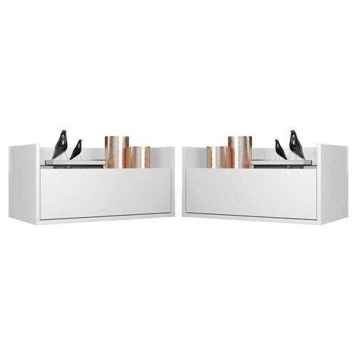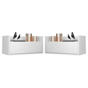 Kit Com 2 Mesas De Cabeceira 80cm Suspensa Multimóveis V4005 Branca Branco O Kit com 2 Mesas de Cabeceira 80 cm Suspensa Multimóveis é uma solução prática para você deixar o seu quarto mais bonito e complementar seu ambiente. Produzido em MDP com acabamento acetinado (cerca de 20% de brilho), que garante maior durabilidade e facilidade na limpeza, possui 1 gaveta com amplo espaço interno e corrediças metálicas que proporcionam mais leveza no manuseio. Ainda, acompanha kit para ser montado de forma suspensa, conforme a altura que você quiser do chão. Seu design clean permite que seja utilizado em diferentes ambientes, adaptando-se conforme sua necessidade. Conteúdo da Embalagem: 2 (duas) mesas de cabeceira 2 (dois) kits com suporte para mesa de cabeceira