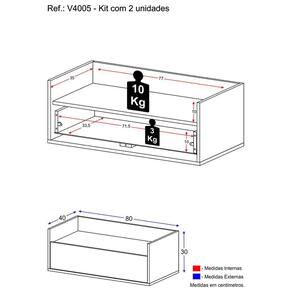 Kit com 2 Mesas de Cabeceira 80cm Suspensa Multimóveis V4005 - Branco