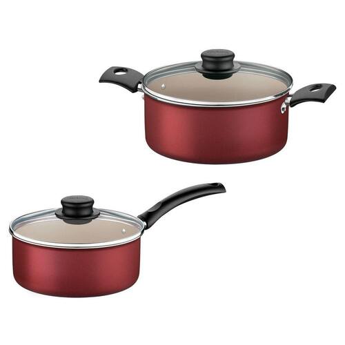 Kit com 1 panela 16 cm e 1 caçarola 20 cm antiaderente tampa de vidro tramontina turim