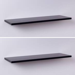 Kit com 2 Prateleiras de Madeira na cor Preto 60cm x 20cm x 1,5xm Com Suporte de Embutir (Invisível) . Cada prateleira do Kit é acompanhada de 2 suportes de tipo de Embutir (Invisível) para fixação. Descrições: Cor: Preto Tamanho: 60cm largura x 20 cm profundidade x 1,5cm espessura Material: Madeira MDP Fixação: de embutir (invisível) Instruções de uso e instalação: Para fácil limpeza, utilize pano levemente umedecido. Não utilizar produtos químicos ou abrasivos. Acompanha embalagem com as instruções de montagem e fixação. Observação: todos os itens de decoração das fotos não acompanham o produto.