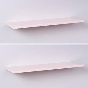 Kit com 2 Prateleiras de Madeira na cor Rosa Bebê 60cm x 20cm x 1,5xm Com Suporte de Embutir (Invisível) . Cada prateleira do Kit é acompanhada de 2 suportes de tipo de Embutir (Invisível) para fixação. Descrições: Cor: Rosa Bebê - Rosa Claro Tamanho: 60cm largura x 20 cm profundidade x 1,5cm espessura Material: Madeira MDP Fixação: de embutir (invisível) Instruções de uso e instalação: Para fácil limpeza, utilize pano levemente umedecido. Não utilizar produtos químicos ou abrasivos. Acompanha embalagem com as instruções de montagem e fixação. Observação: todos os itens de decoração das fotos não acompanham o produto. Ean: 7899983604595