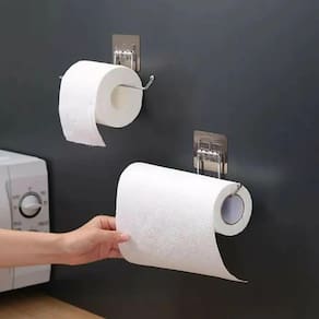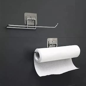 Kit Com 2 Suportes Adesivo Porta Papel Toalha Alumínio Filme Cozinha