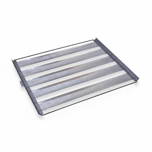 Cada assadeira possui tiras perfuradas em alumínio, o que permite melhor circulação de ar quente, garantindo pães dourados, crocantes e uniformemente assados.