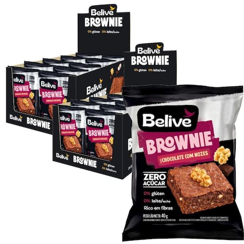 Kit com 20und Brownie BeLive Chocolate com Nozes Zero 40g