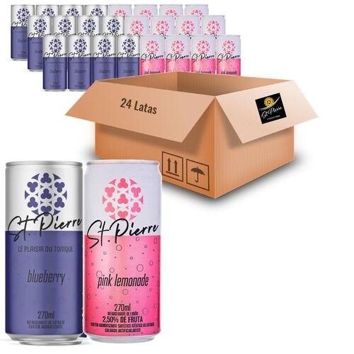 12 unidades do Refrigerante ST PIERRE Blueberry 270ml. 12 unidades do Refrigerante ST PIERRE Pink Lemonade 270ml.