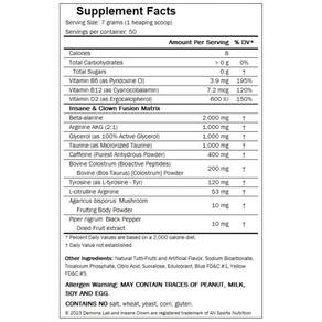 O Insane Clown combina uma variedade de ingredientes de alta qualidade para oferecer resultados extraordinários. Com 400mg de cafeína, 1000mg de Taurina, 1000mg de Arginina e 2000mg de Beta Alanina, esta fórmula única é projetada para aumentar sua resistência, força e foco durante os treinos.