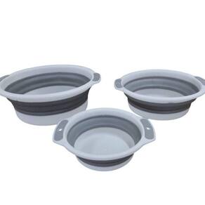 Kit com 3 Bacia Retrátil Dobrável Branca 03 / 07 / 10 Litros Kit com 3 Bacia Retrátil Dobrável Branca 03 / 07 / 10 Litros ===================================== Solução perfeita para quem busca praticidade, versatilidade e economia de espaço na organização do lar. Bacias são ideais para uma variedade de tarefas, como lavar roupas, higienizar alimentos, lavar louças ou até mesmo para organização e armazenamento de objetos no dia a dia. O grande diferencial desse conjunto é sua função dobrável, que permite que as bacias sejam compactadas quando não estiverem em uso, facilitando o armazenamento e economizando espaço A bacia maior pode ser Utilizado para lavagem de roupas e limpeza pesada, enquanto as menores são perfeitas para tarefas cotidianas, como lavagem de alimentos ou pequenos itens. Seu design moderno e prático também permite que elas sejam usadas em qualquer ambiente da casa, sendo uma ótima opção tanto para uso doméstico quanto em acampamentos ou viagens. ===================================== Contém: 03 Bacias Especificações: - Material: Plástico e TPR - Medida Bacia 01: 34cm x 12cm x 32cm / 13 Litros - Medida Bacia 02: 29,5cm x 9,5cm x27cm / 07 Litros - Medida Bacia 03: 23cm x 07cm x 20cm / 03 Litros - Dobrável - Peso: 525 gramas - Cor: Branco com Cinza ===================================== Devido à diferença entre monitores e iluminação diferentes, pode haver variação na tonalidade apresentada no anúncio. Medidas muito aproximadas. Marca: Não Informado Ean: 6013400072502