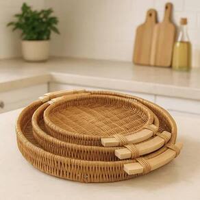 Kit com 3 Bandejas Redonda Madeira 24cm / 30cm / 35cm