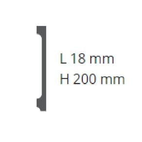 "Material em poliestireno de alta densidade. Instalação rápida e sem sujeira. Produto pronto para pintura. Resistente à umidade. Imune à cupins. Não mofa ou apodrece. Usa somente cola, não sendo necessário parafusos, buchas ou outro tipo de fixação mecânica." Acabamento: Liso Altura do Conjunto: 0 cm Ambiente: null Ambiente Principal: Sala de Jantar Cor: Branco Cor Predominante: Branco Informação Complementar: 3x Rodapé de Poliestireno 20cm x 18mm x 2.44m Liso ML20 NMC Branco Altura: 20 cm Peso: 2,29 kg/m