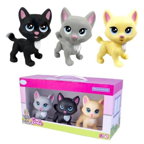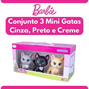 - Contém 3 mini gatinhas: cinza, preta e creme - Design inspirado no universo Mini Pets da Barbie Pupee - Detalhes delicados e acabamento caprichado - Feitas com material seguro e resistente - Perfeitas para brincar, colecionar ou decorar