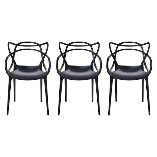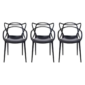 Kit Com 3 Cadeira Allegra Masters Polipropileno Sala,cozinha, Jantar, Empilhavel Preta Modelo: Cadeira Allegra Masters Conhecida no mundo inteiro pelo seu design único e a forma como foi criada a cadeira Allegra Masters é uma homenagem a três cadeiras símbolo da história do design a cadeira Jacobsen de Arne Jacobsen a cadeira Saarinen de Eero Saarinen e a DSR do casal Eames. Os modelos se entrelaçam em uma combinação de curvas dando vida a uma e cativante fusão de estilos. Material da Estrutura: Polipropileno Garantia de 3 meses por de fabricação. Altura Total: 84 cm Altura do Chão Até o Assento: 48 cm Profundidade Interna do Assento: 48 cm Largura Interna do Assento: 53 cm Peso Máx. Recomendado: 120 kgs Peso unitário: 4,2 kgs