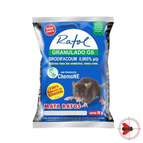 - Quantidade: 3 sachês de 50 gramas - Eficiente contra ratos - Uso doméstico - Marca: ChemoNE Ean: 7898327790246