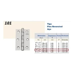 kit com 3 jogos de 03 dobradiça porta merkel 101 preta 3. 1/2 kit com 3 jogos de 03 dobradiças merkel preta - cartela contem 3 dobradiças + parafusos ideal para 01 porta - dobradiça para porta de passagem medida 3. 1/2 - cartela com 03 dobradiças + parafusos - acabamento preto - para portas de até 25 kg - medida: 86mm x 56mm a x l ----------------------------------------------------------------------------------------------------------------------- produto acompanha ? - sim, todos nossos produtos acompanham envio é feito por transportadora ou correios? - todos nossos envios são feitos via transportadoras marca: merkel modelo: dobradiça 101 preto dobradiça porta inox rústica