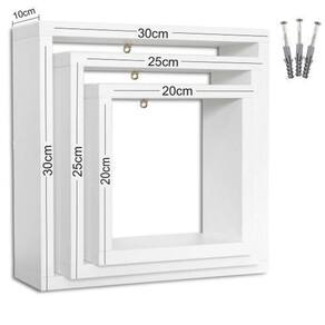 Características: Nicho cubo 3 peças Nicho 01: 30x30x10 cm AxLxP Nicho 02: 25x25x10 cm AxLxP Nicho 03: 20x20x10 cm AxLxP Material: mdf 15mm Cor: Branco Peso do produto: 4,5 kg Formato: Quadrado Ideal: Para decoração Necessita Montagem Sim, Porém a montagem é simples. Basta colocar parafusos e buchas e fixar na parede Conteúdo da embalagem: 03 Nichos Cubo Branco + Parafusos e buchas Marca: Não Informado Ean: 7791770145598